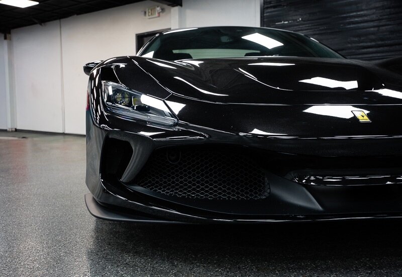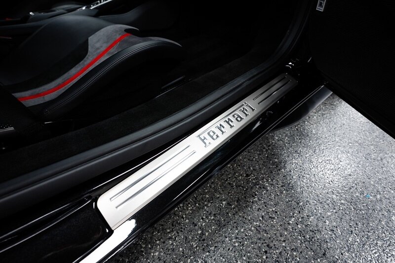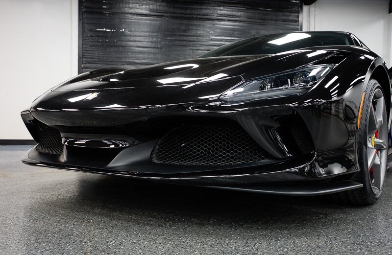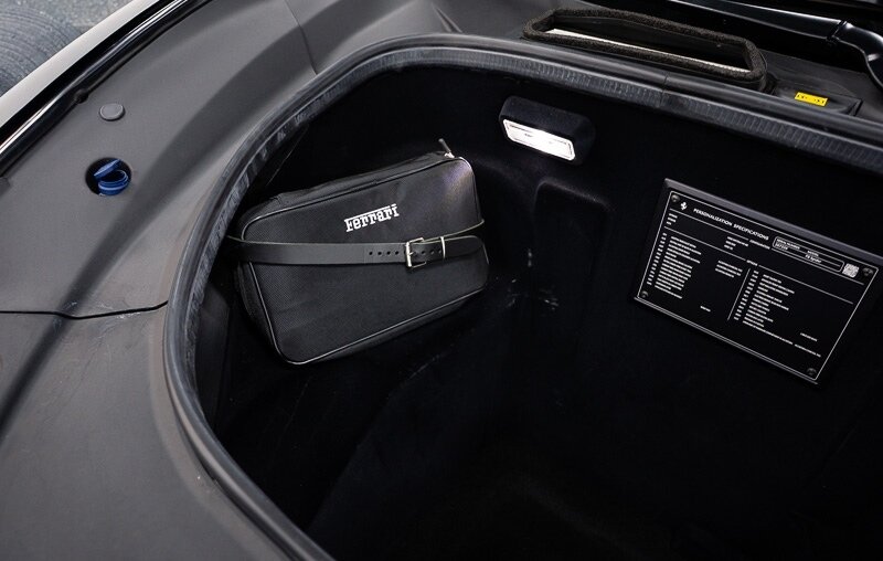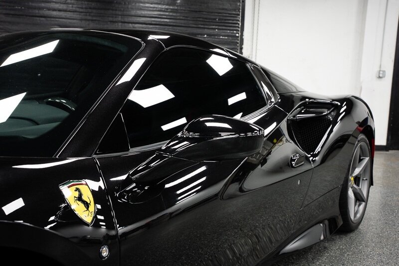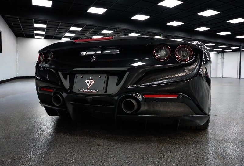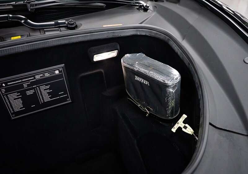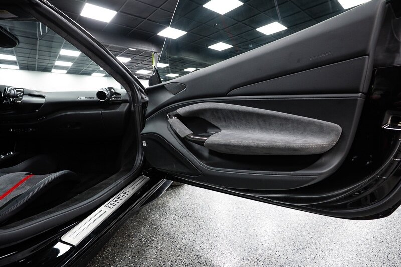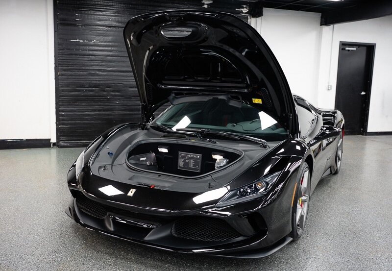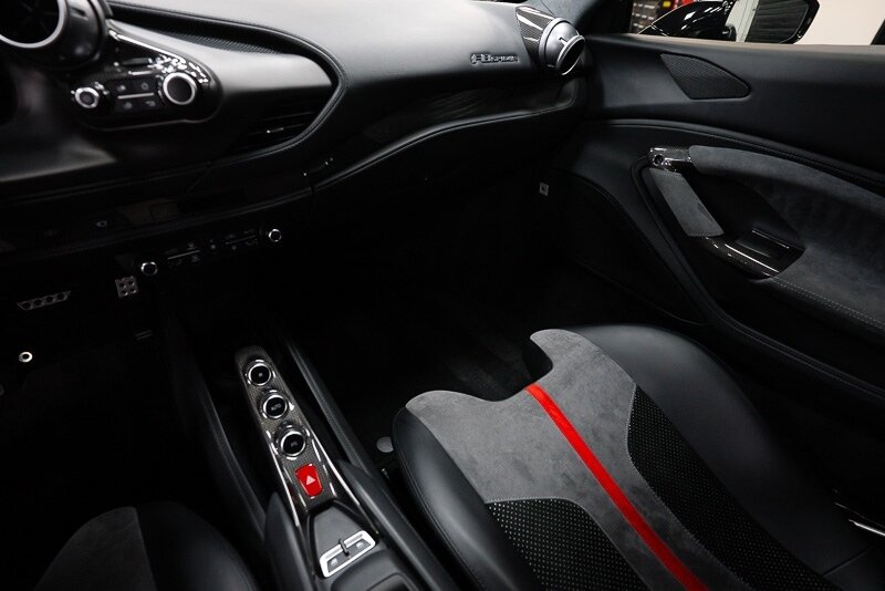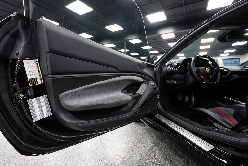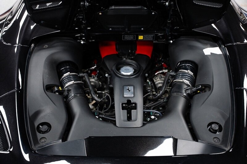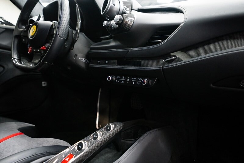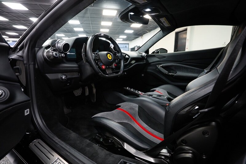 This 2021 Ferrari F8 is a black-over-black Spider that has 2400 miles and is powered by a twin-turbocharged 3.9-liter V8 paired with a seven-speed dual-clutch automated transaxle. The car was optioned with an electronically controlled limited-slip differential, a sport exhaust system, a retractable hardtop, 20? five-spoke alloy wheels, carbon-ceramic brakes, SCM-E magnetorheological suspension, a front-axle lift system, AFS adaptive LED headlights, Scuderia Ferrari fender shields, parking sensors, front and rear cameras, heated power-adjustable seats, dual-zone automatic climate control, and navigation. This F8 Spider is 2 owners with service records, and, a clean Carfax report.